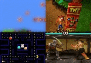 Super Mario, Crash Bandicoot, GTA, Zelda, Red Alert, Sonic, Donkey Kong, Contra, Megaman, Pepsiman, Street Fighter, Pokemon, Pacman, Final Fantasy, Tekken, Tetris, King of Fighters, Mortal Kombat, Doom, Halo, Metal Gear, Metroid, SimCity, and MUCH MUCH MORE!